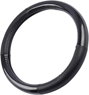 Motor Trend Lenkradhülle aus Karbonfaser, schwarz, Vinyl mit Kohlefaser-Akzent, 34,3 cm - 36,8 cm, schützt vor Hitze und Kälte