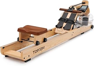 TOPIOM Rudergerät, Rudergerät Wasser Widerstand Ruderzugmaschine, Wasser-Rudergerät mit Verstellbarer Fußstütze und Bank, LCD-Display, Rower Fitnessgeräte für zu Hause (Eiche Farbe)