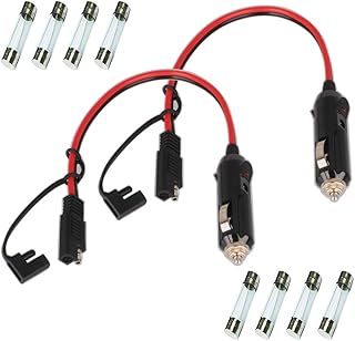 GTIWUNG 2 Stück 30CM 1FT Auto-Zigarettenanzünder 12V Stecker auf SAE-Verlängerungskabel, 16 AWG Zigarettenanzünder mit SAE-Anschluss, Auto-Ladegerät mit 10A&15A Sicherung und LED-Licht