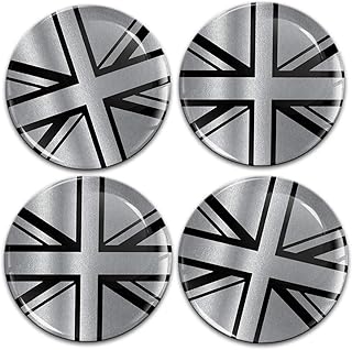 Biomar Labs® 4 x 60mm Aufkleber 3D Silikon UK GB United Kingdom Union Jack Flagge Fahne Silber Schwarz Für Radkappen Nabenkappen Radnabendeckel Rad-Aufkleber Nabendeckel A 10860
