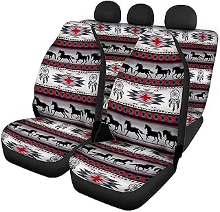 SEANATIVE Auto Universal Sitzschoner Bezüge Afrikanisches Tribal Design Vorder-/Rücksitzkissen Set von 3 Stück Eimer Sitzbezug Pferd Traumfänger Muster